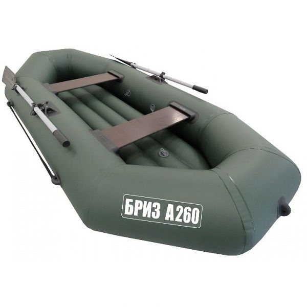 Характеристики лодки «БРИЗ-260»: • Длина наибольшая: 2,60 м. • Ширина наибольшая: 1,23 м. • Диаметр баллона наибольший: 0,33 м. • Вес комплекта: 13,7 кг. • Размер упаковки - 71х43х30 см. • Грузоподъемность: 210 кг. • Пассажировместимость: 2 человека. • Количество герметичных отсеков: 2 шт. + дно • Рабочее давление в баллоне: 0,2 кгс/см2. • Плотность ПВХ-ткани: 750 г/м.кв. Лодка поставляется со стандартным набором комплектующих: • Ножной насос 5 л. • 2 весла с держателями весла в уключине. • 2 жестких сиденья. • Сумка-рюкзак для хранения и перевозки. • Ремкомплект и руководство по эксплуатации (паспорт).