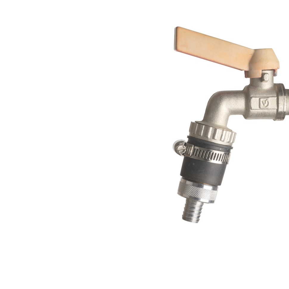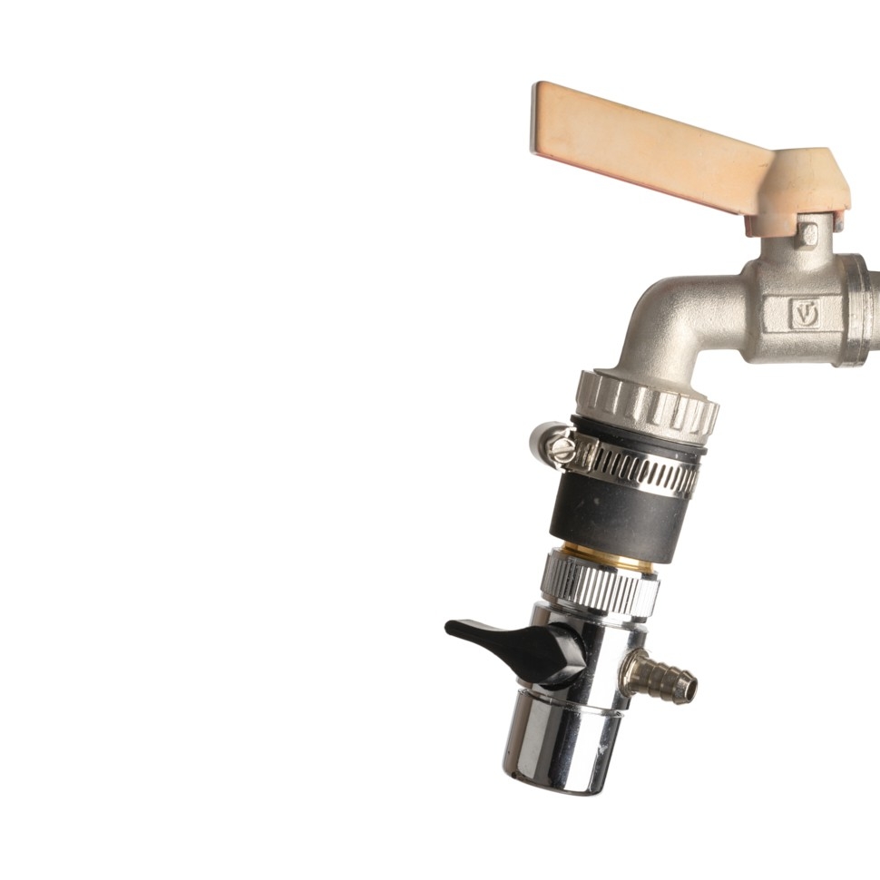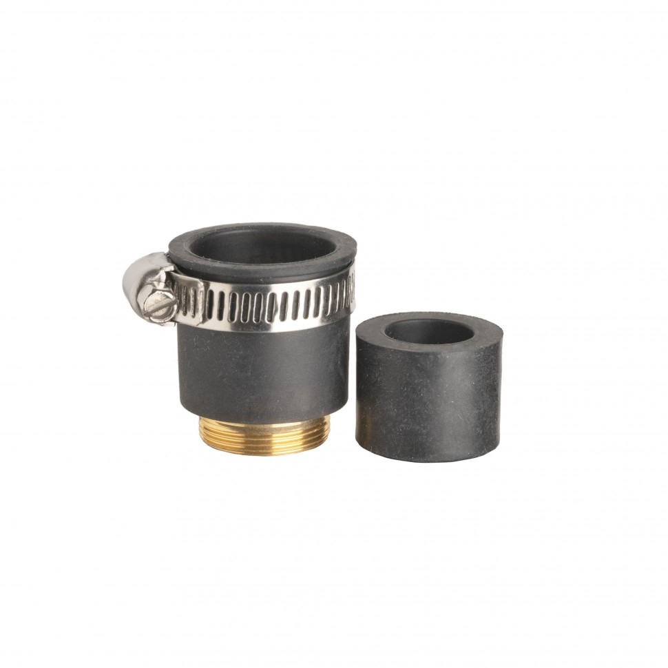 Верхняя часть резинового переходника устанавливается на водопроводный кран и фиксируется хомутом. К нижней металлической резьбовой части прикручивается переходник для воды. Имеет один вкладыш, внутренним диаметром - 16 мм. Внутренний диаметр без вкладыша - 23 мм.
